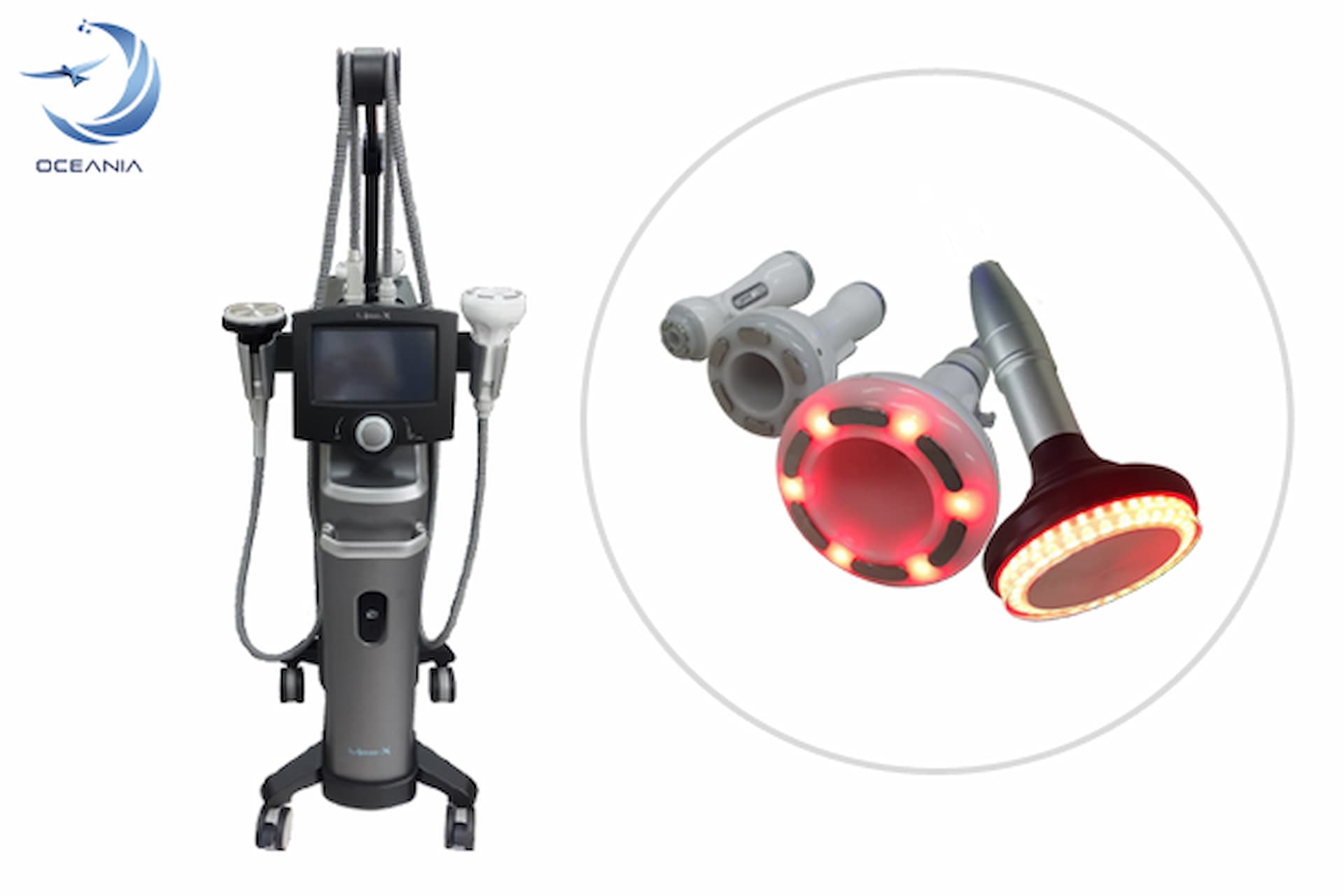 - Vacuum Suction Head combined with RF: Suction and release fat layers after being dissolved with the above 2 heads like a form of massage but many times more effective, going deep inside and eliminating quickly, gently and without Pain and burning sensation as if using hands.
