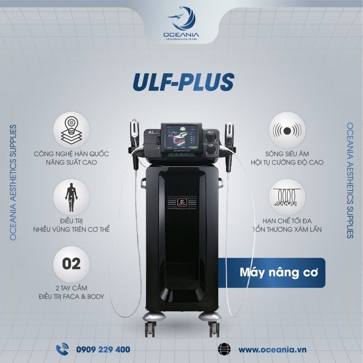 The latest ULF PLUS machine currently originates from Korea, is the newest and most modern machine for non-surgical skin lifting and rejuvenation. The machine minimizes pain, overcomes all disadvantages of previous models but still provides outstanding efficiency and absolute safety. In particular, there will be no need to apply anesthesia or take painkillers during the treatment process